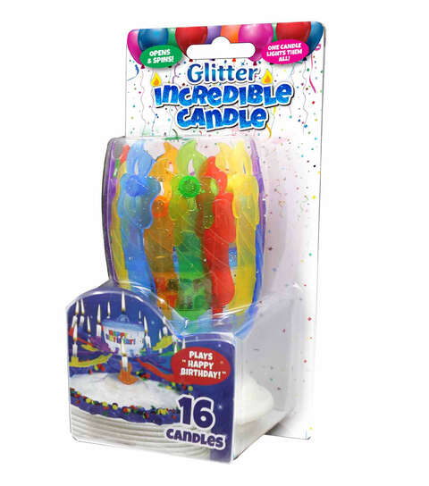 - Automatically lights 16 candles opens spins and plays Happy Birthday