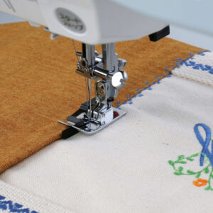 A very useful addition to the sewing room when wanting a perfect straight “stitch in the ditch.” The guide on the foot spreads the seams allowing you to stitch perfectly in the ditch, and is also useful when adding decorative top stitching along seams.