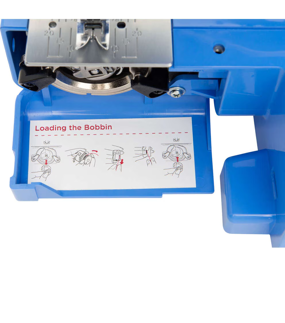 Easily access the front-loading bobbin system even while your fabric is under the presser foot! With the bobbin instructions you can easily thread the bobbin case without searching for the instruction manual!