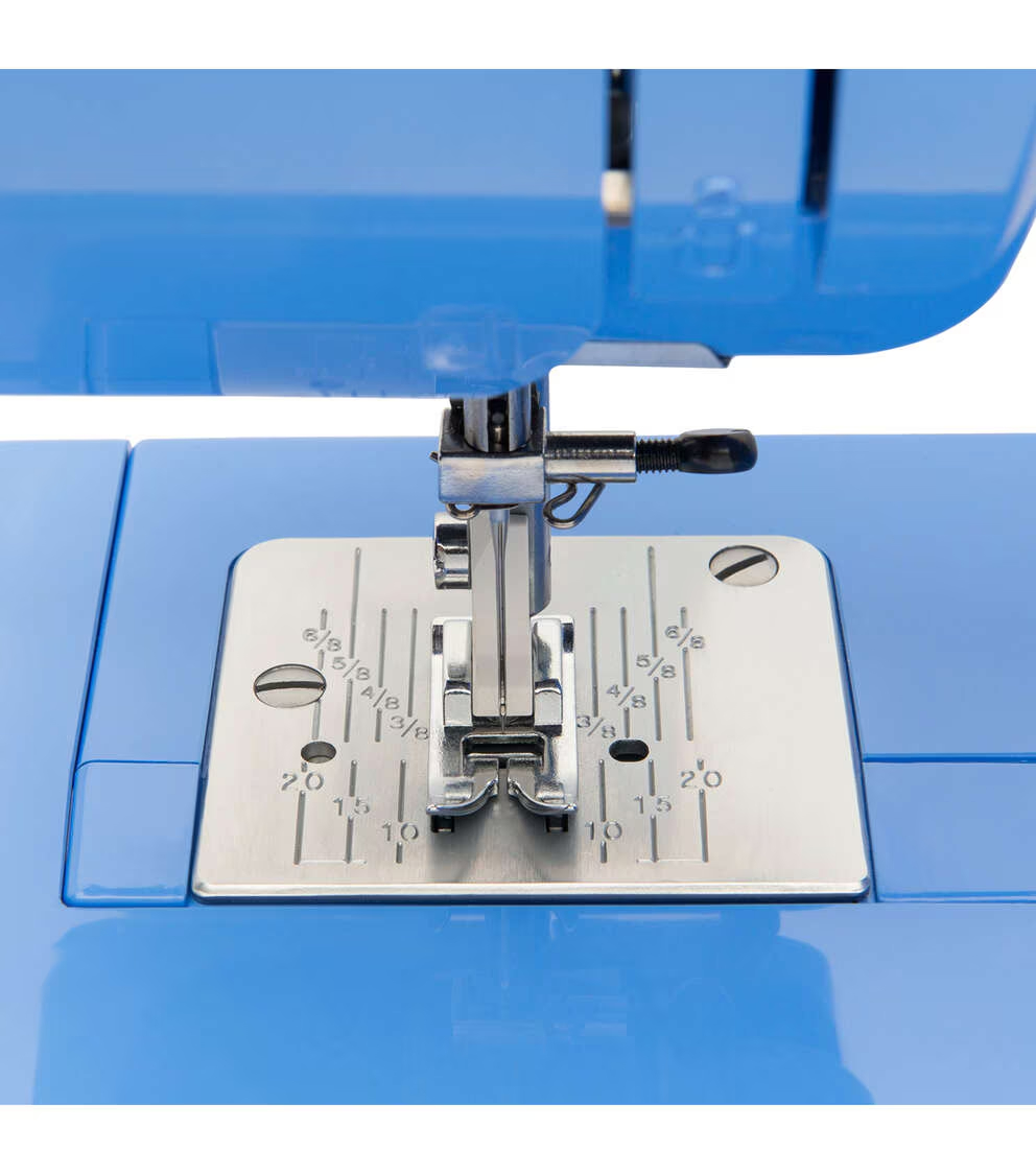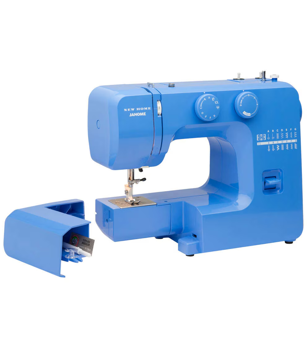 Fun Colors. Serious Sewing. Experience the fun of sewing with the Janome Blue Couture sewing machine! The Janome Blue Couture easy-to-use sewing machine was designed with beginners in mind! It includes an easy-to-follow Instruction Manual, Quick Start Guide and YouTube video tutorials! This vibrant sewing machine also has a built-in bobbin loading guide that’s impossible to miss, and is easily found within sight of the bobbin loading area. Boasting convenient features like 15 of the most popular and versatile built-in stitches, a four-step buttonhole, adjustable stitch length and a front-loading bobbin system, this sewing machine will be one you can grow into. Don’t let the fun colors fool you, this full-sized sewing machine also has an interior heavy duty metal frame, dual retractable spool pins, and four presser feet. The Janome Blue Couture sewing machine is versatile, so you can tackle projects like garment sewing, home décor, quilting and even heirloom projects with ease!