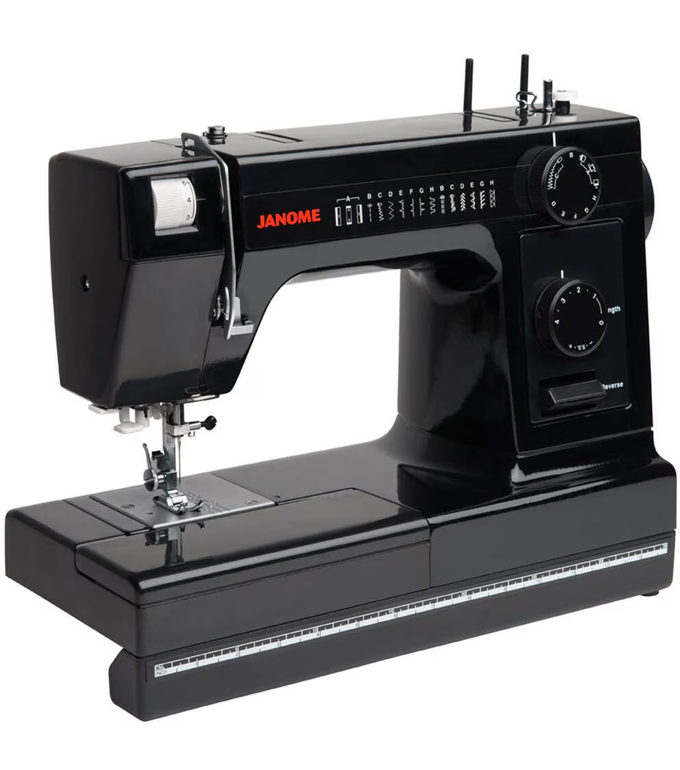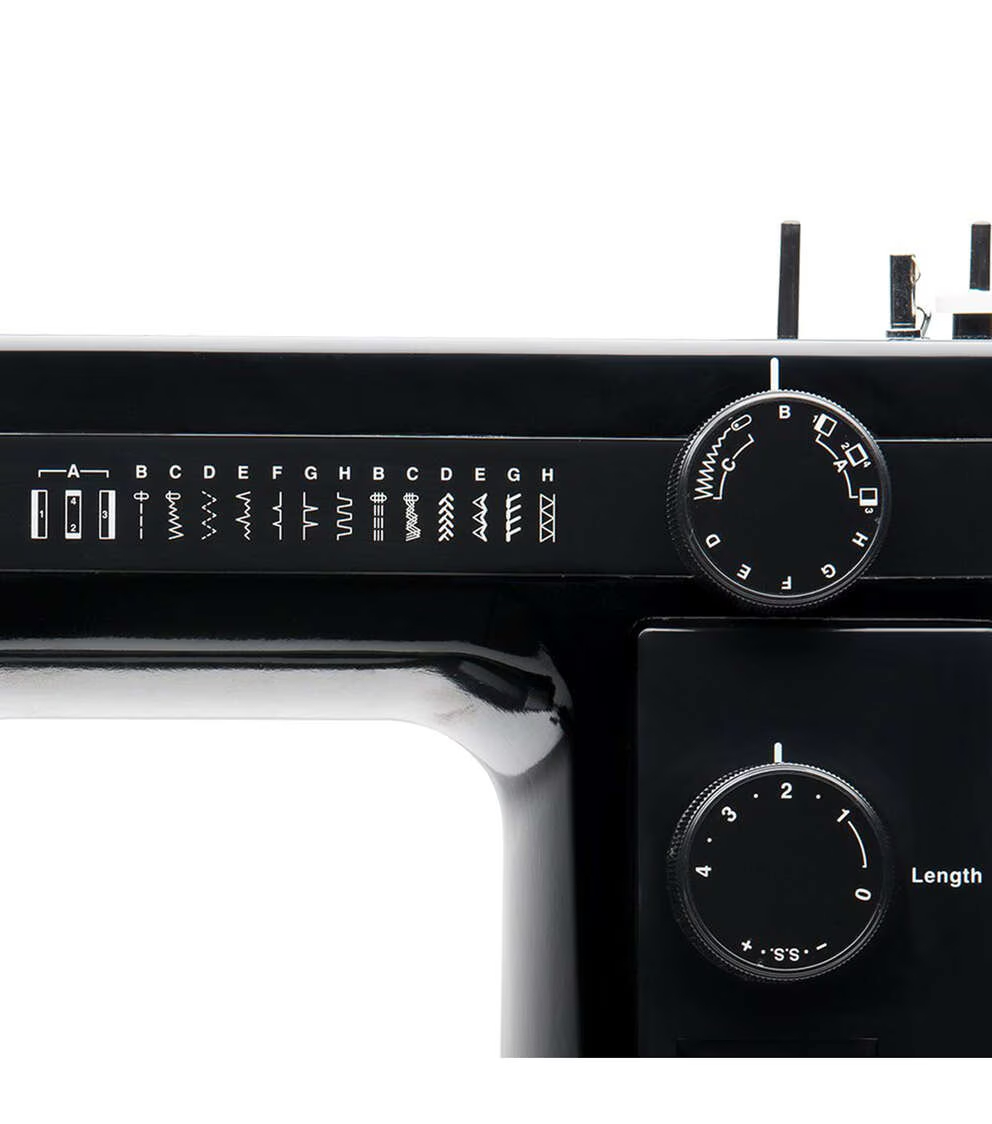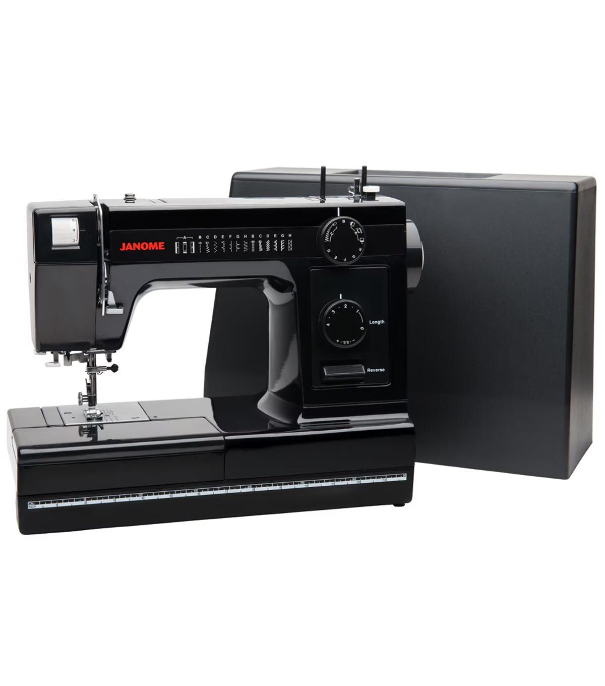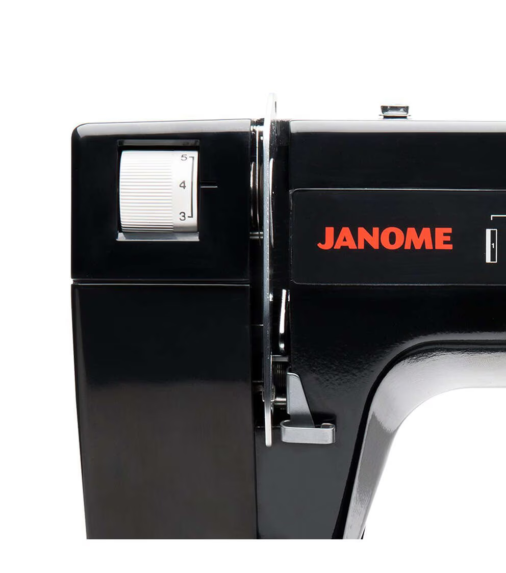Tackle your next sewing project with the NEW Janome HD-1000 Black Edition (HD-1000BE). This machine earned the “HD” moniker from the powerful motor and the all-aluminum interior frame and outer body. The all-metal construction combined with easy-to-use features and a wide range of accessories promise a dependable and enjoyable experience. Whether it be a piece of garment, accessory or a home décor item, you can create the project you have been dreaming about using the HD-1000BE’s 14 built-in stitches and one four-step buttonhole. The machine includes an adjustment dial to set the length of stitches so that you can work from fine to heavier fabrics. The HD-1000BE comes with a special accessory pack including: Ultraglide Foot, Even Feed Foot, 5-Pack of Leather Needles, 2 Anna Maria Horner sewing patterns and a sheet of vinyl decals of Anna Maria Horner designs.