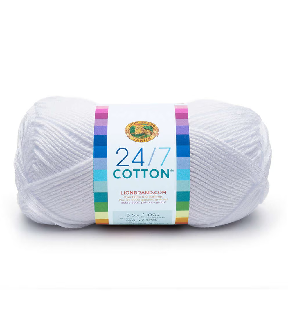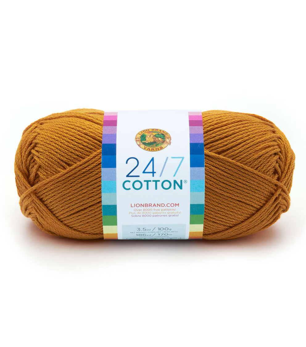 Create lovely knit or crochet projects using the Lion Brand 24/7 Cotton Yarn. This 100% worsted-weight, mercerized natural fiber yarn is easy to care for and comes in a variety of colors for you to choose from. Knit or crochet lovely wearables, baby garments, home decor, kitchen accessories and lots more with this lovely cotton yarn. Mix and match colors to add more vibrancy to your projects.