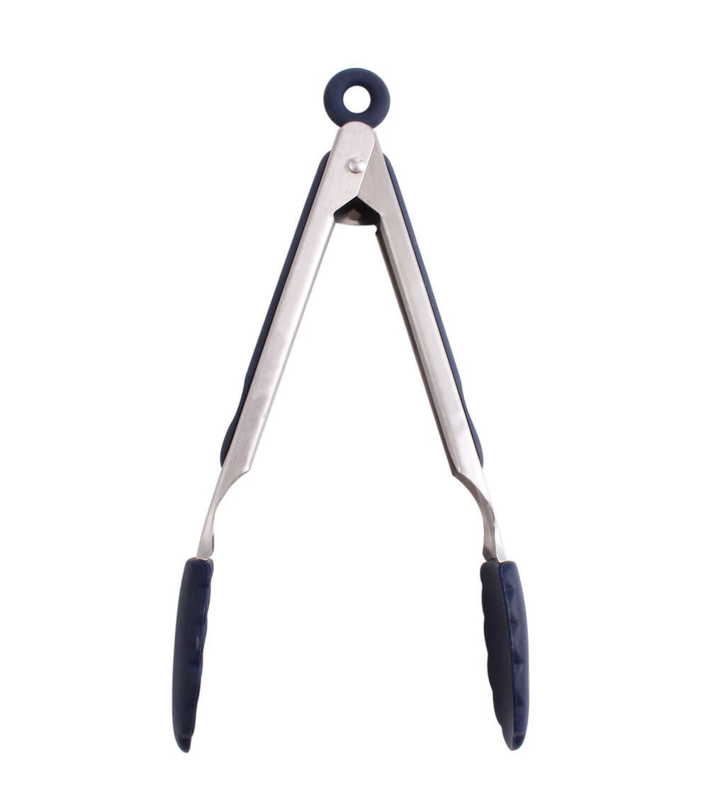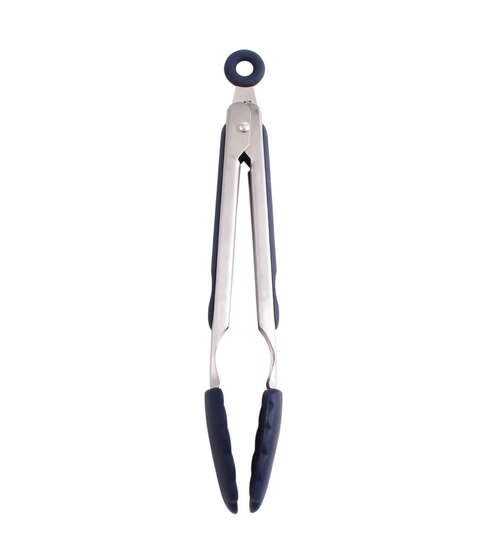 Sleek stainless steel handle with upscale navy accents. Perfect for everyday cooking or serving your favorite meals