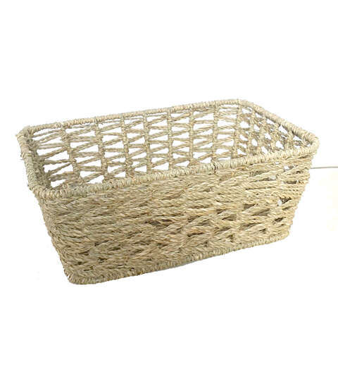 Add a natural yet bohemian style to the unadorned spaces in your home with the Organizing Essentials Open Rectangle Seagrass Weave Basket. This decorative basket is made from durable seagrass and woven into a beautiful pattern for visual flair. Stack this versatile basket in your bedroom, restroom or any other room for stunning delight.