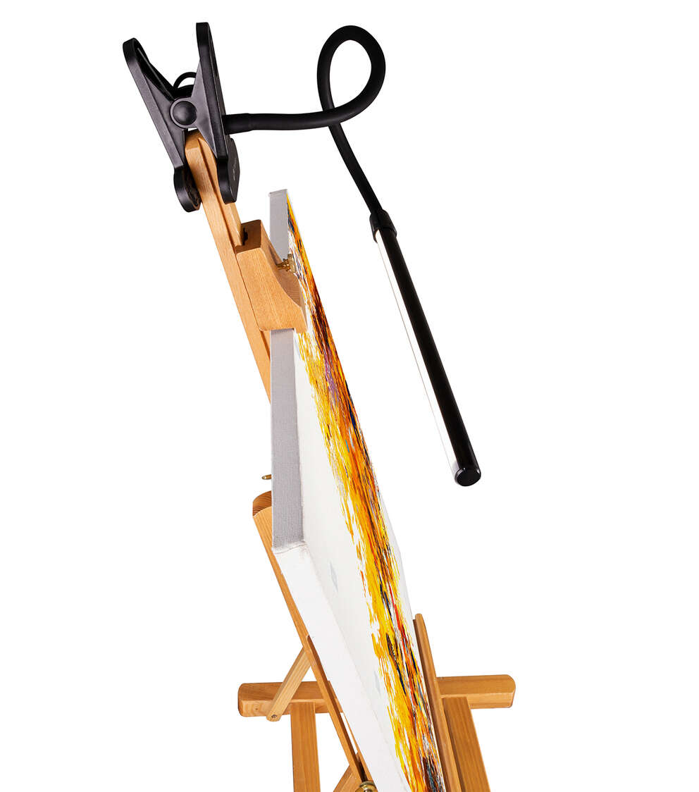 Great for easels, computer desks, bookshelves, dorm rooms and so much more, the OttLite Clip-On LED Easel Lamp provides 12.6 inches of ClearSun LED illumination on a flexible 16.6-inch neck with sturdy spring-loaded clip. The flexible yet strong neck holds position and is easy to adjust and move as you work. Exclusive to OttLite, natural daylight quality ClearSun LED illumination reduces eyestrain by up to 51% so you can read, work, create and study with more clarity and comfort. Great for painting and detail work, OttLite’s ClearSun LED technology has a CRI (Color Rendering Index) of 95+ so you can see every color and detail accurately.