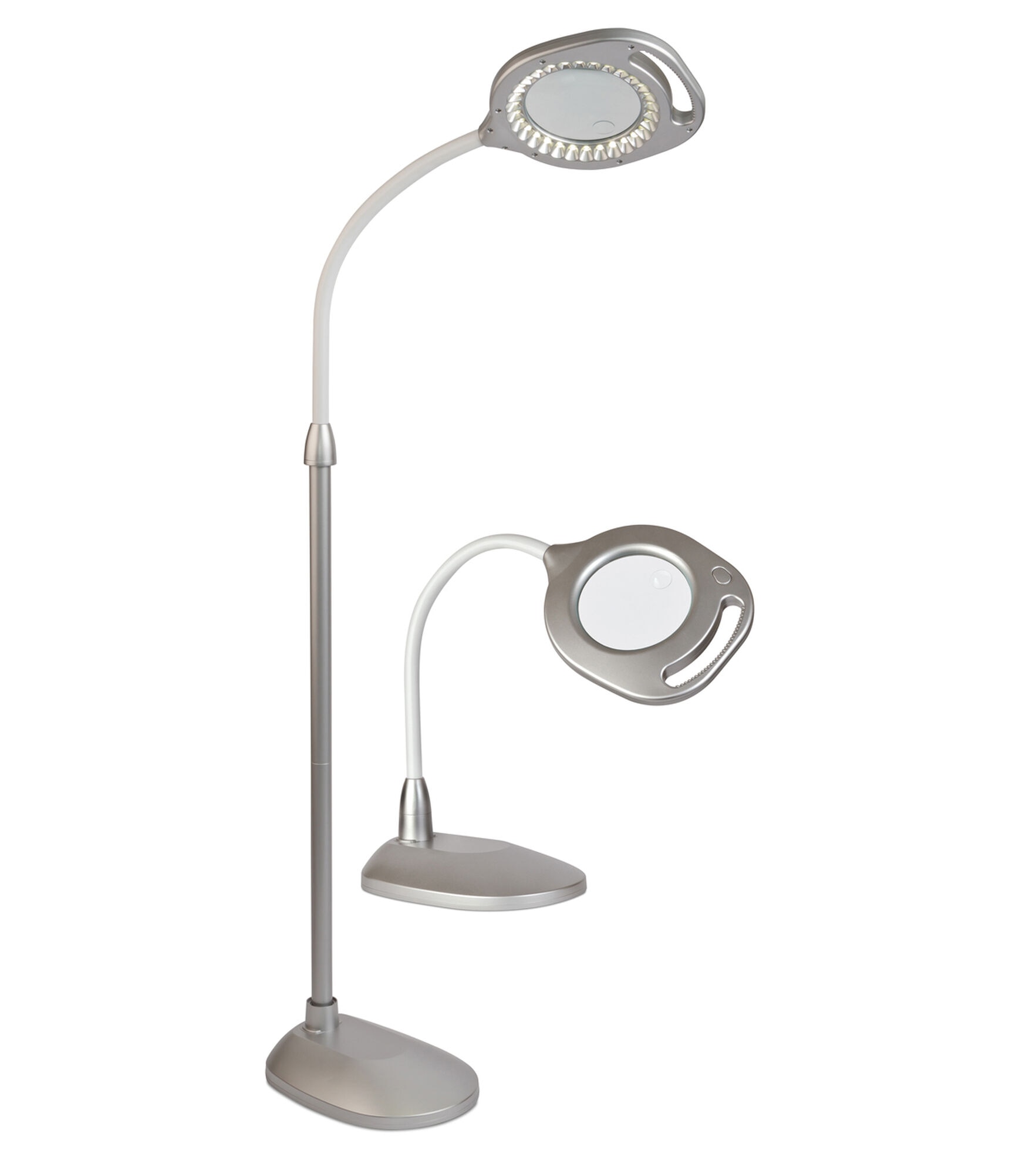 The OttLite 2-in-1 LED Magnifier Floor & Table Lamp combines the best in LED illumination with magnification. The 30 Super Bright Natural Daylight LEDs provide Natural Daylight Illumination so you can see details clearly and colors accurately. A rugged built-in handle allows for easy adjustment and optical grade magnifiers allow hands-free magnification right where you need it. Plus the included conversion kit allows the lamp to transform from a floor lamp to a tabletop model. That’s like having two ways to do what you love, longer.