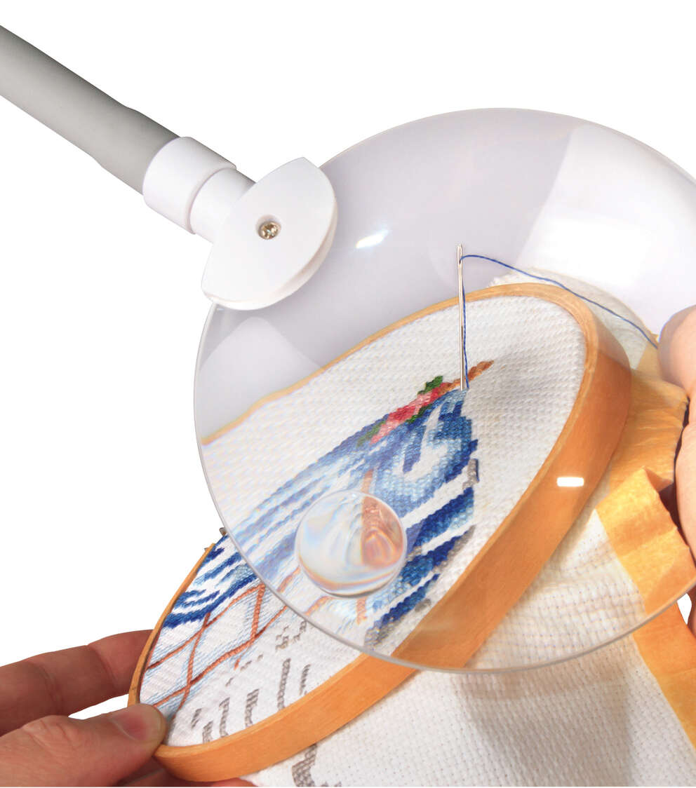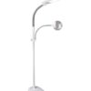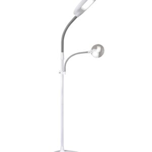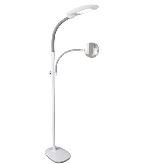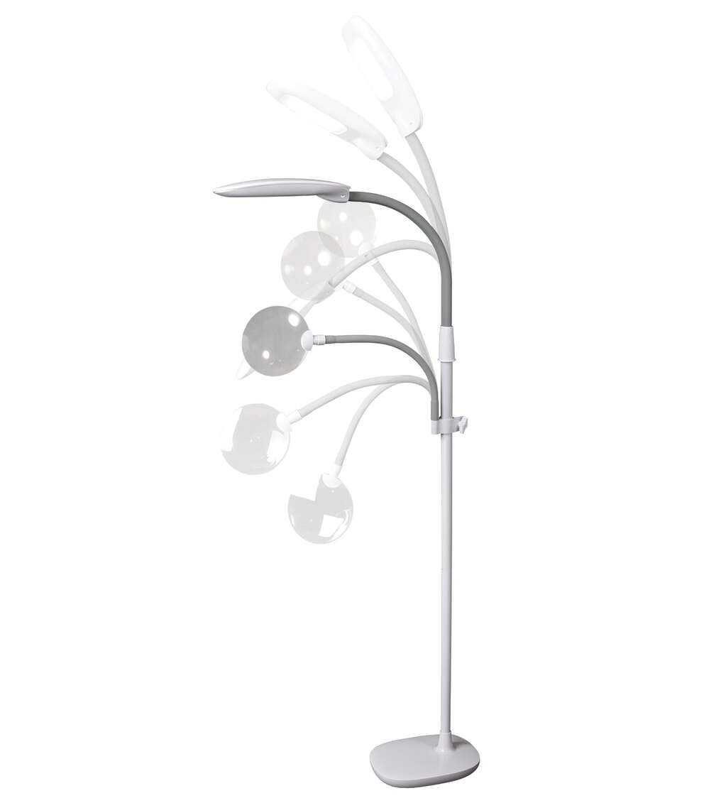 See every color true to life and detail clearly with this OttLite floor lamp featuring eyestrain-reducing ClearSun LEDs and a 1.75x magnifier. Bend and flex as you work with the flexible yet sturdy arm that adjusts the height from 47.5 to 64 inches. With the touch sensitive controls select from three brightness levels to provide just the amount of light you need for your work space. The optical grade magnifier on a flexible arm is rimless for uninterrupted viewing and includes a 3x spot viewer perfect for threading needles and precise detail work. Great for sewing tables, next to your favorite knitting or embroidery spot or a home office.
