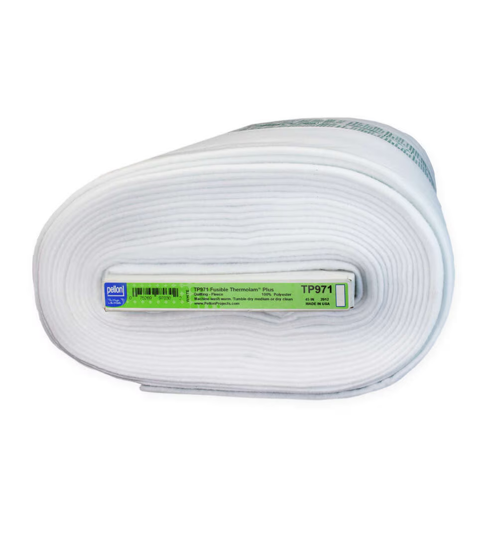 Extra lofty, and designed with fusible adhesive on one side, the Pellon TP971F Fusible Thermolam Plus-White is an ideal pick for craft, home decorating, and quilting projects. This 100% polyester, needle-punched fleece stays lofty after fusing, and it can be used on fabric, cardboard, or wood.