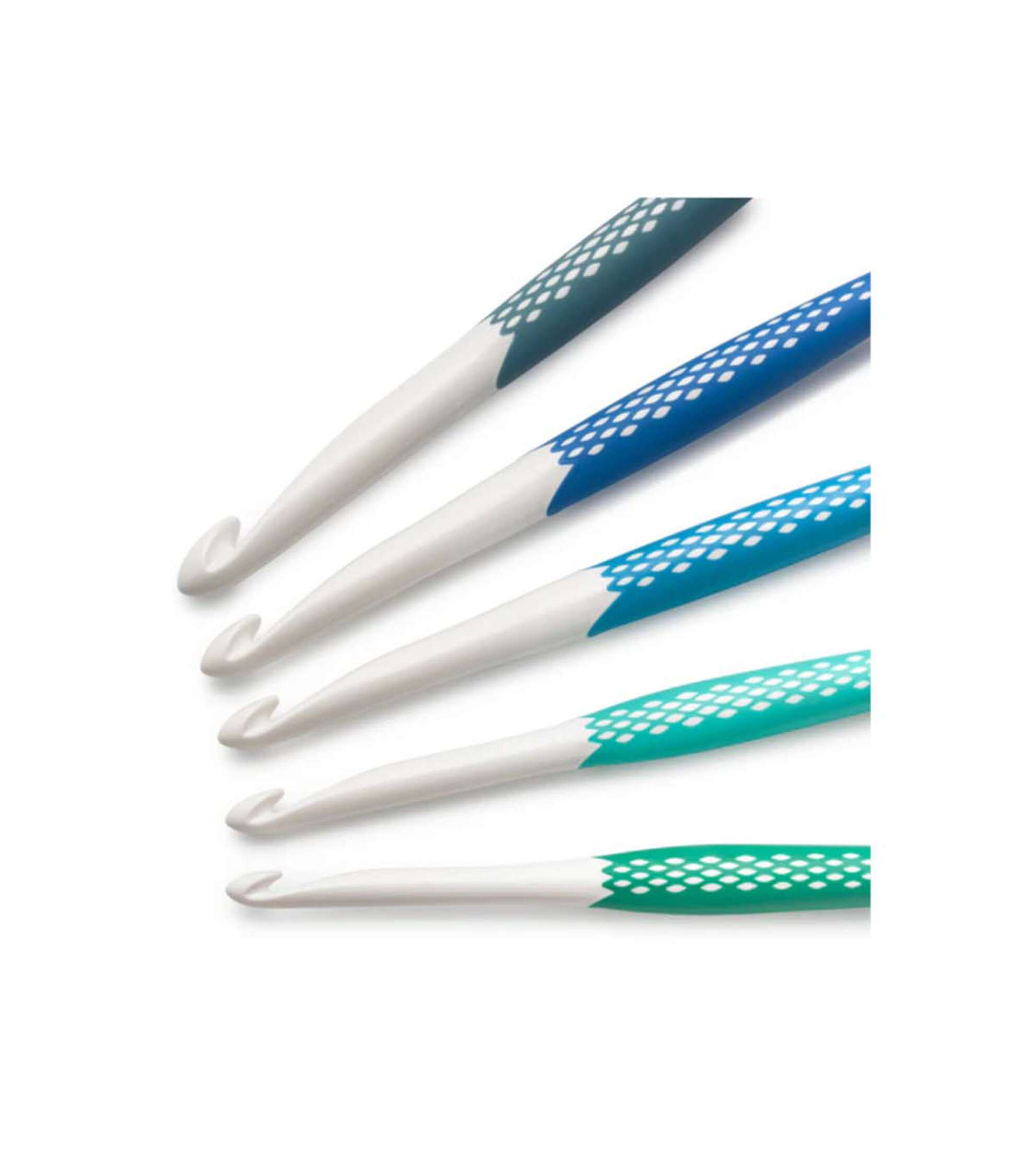 - Optimized hook easily catches yarn and glides it effortlessly through stitches