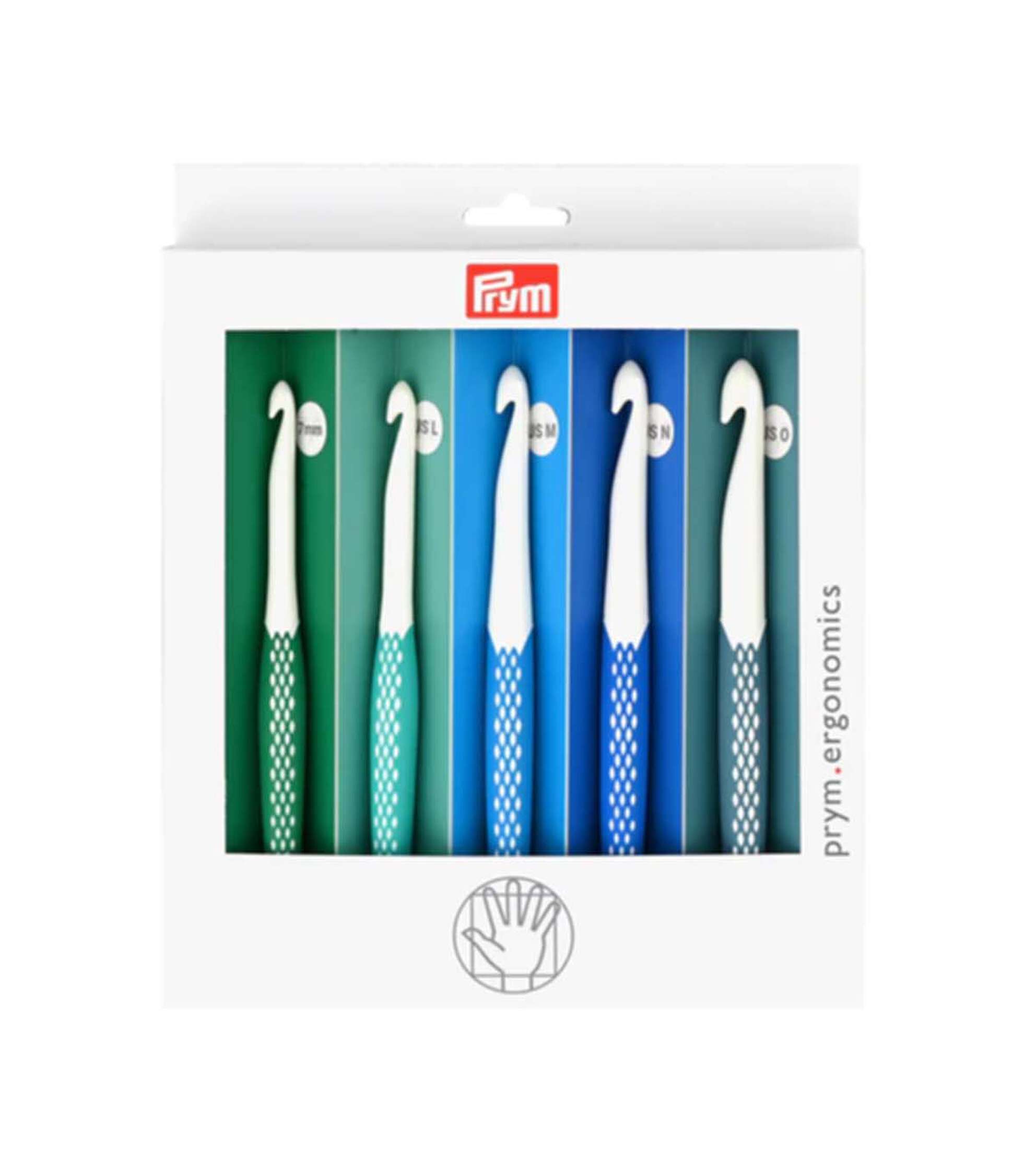 Prym Ergonomics Crochet Hooks will revolutionize your crocheting. The optimized hook catches yarn easily and comfortable handle shape helps you work with ease. These hooks are lightweight, flexible, and warm to hold. This colorful set is perfect for gift giving or adding to your collection.
