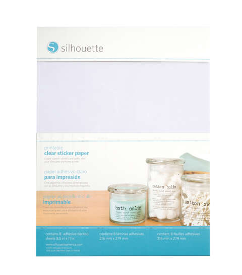 SILHOUETTE OF AMERICA-Printable Sticker Paper. Create your very own custom labels and stickers with your Silhouette and home printer. It’s easy! Print text and designs on clear sticker paper and use a Silhouette electronic cutting tool to cut them out. This package contains eight 8-1/2×11 inch adhesive backed sheets. Imported.