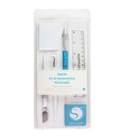 Get all the necessary tools for your Silhouette machine in one kit! This tool set comes with a hook tool for weeding vinyl and heat transfer materials, a scraper tool for scraping your mat or applying vinyl onto project surfaces, a spatula to help lift delicate cut-out pieces from the cutting mat, a pick-me-up tool for picking up and placing small items, a 6 inch clear ruler, and microfiber cloth to clean your machine’s LCD screen.