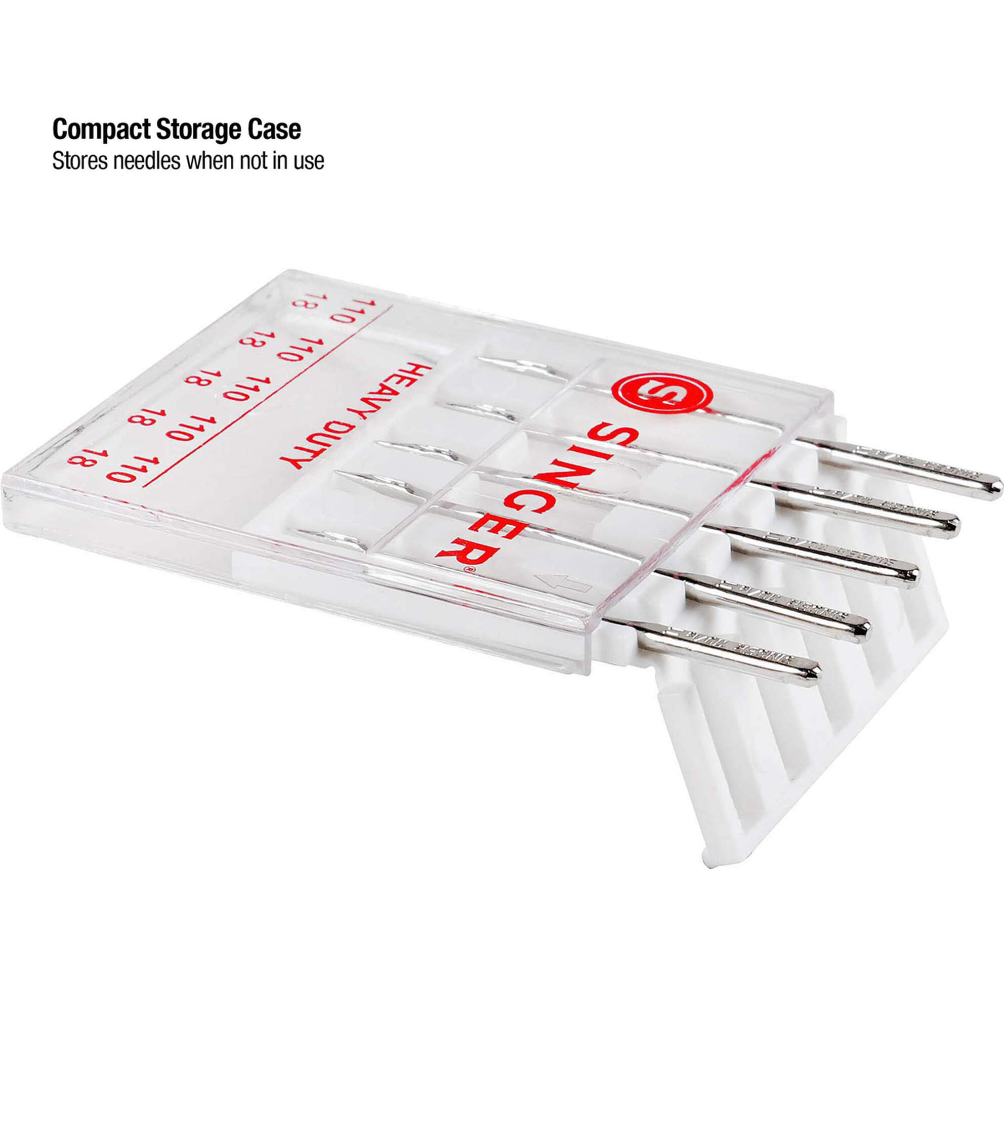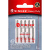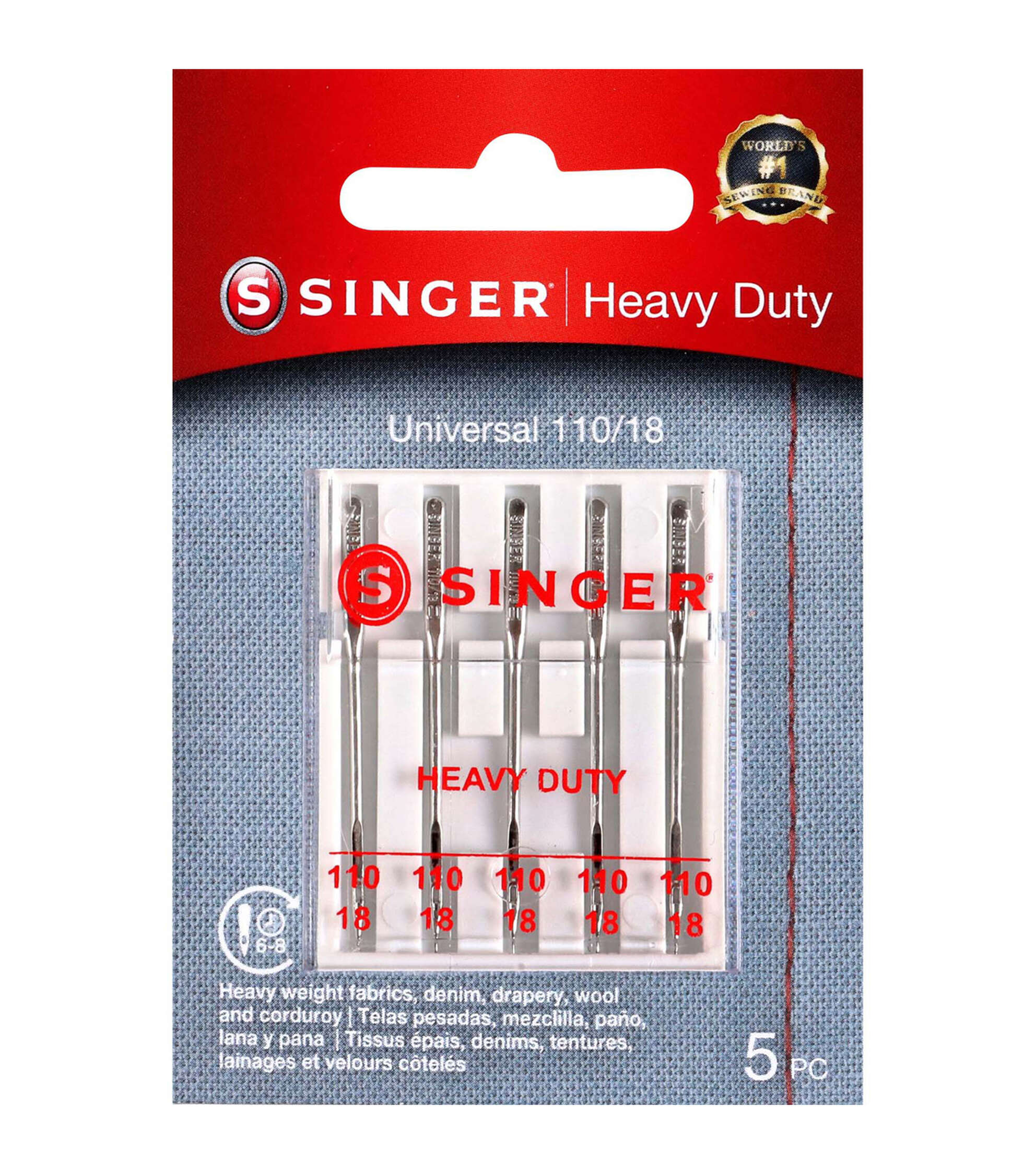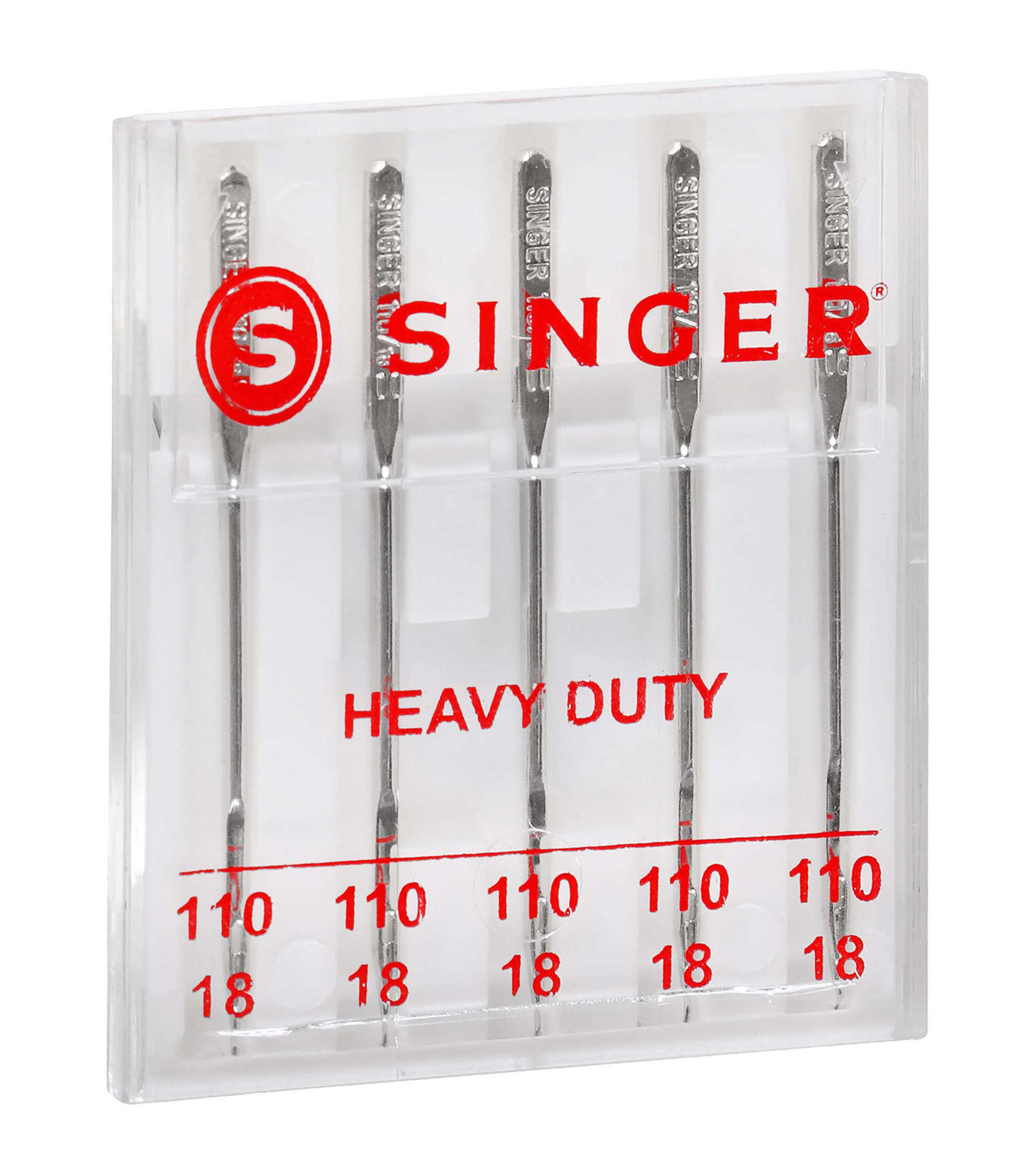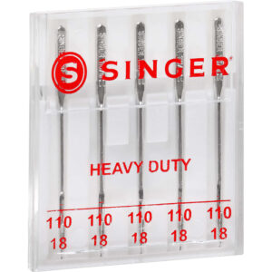 SINGER Heavy Duty machine Needles in size 110/18 are perfect for heavyweight fabrics. Heavy-Duty Needles are strong enough to perform stitching on denim, drapery, wool, upholstery, and corduroy. The 5 machine needles come in a convenient plastic case with individual storage slots and sizes marked on the clear cover. These SINGER needles are color coded silver for ease of recognition, and compatible with SINGER, Brother, Kenmore, Bernina, Janome, Juki and other quality household domestic sewing machines. Domestic machines needles are not compatible with industry sewing machines.