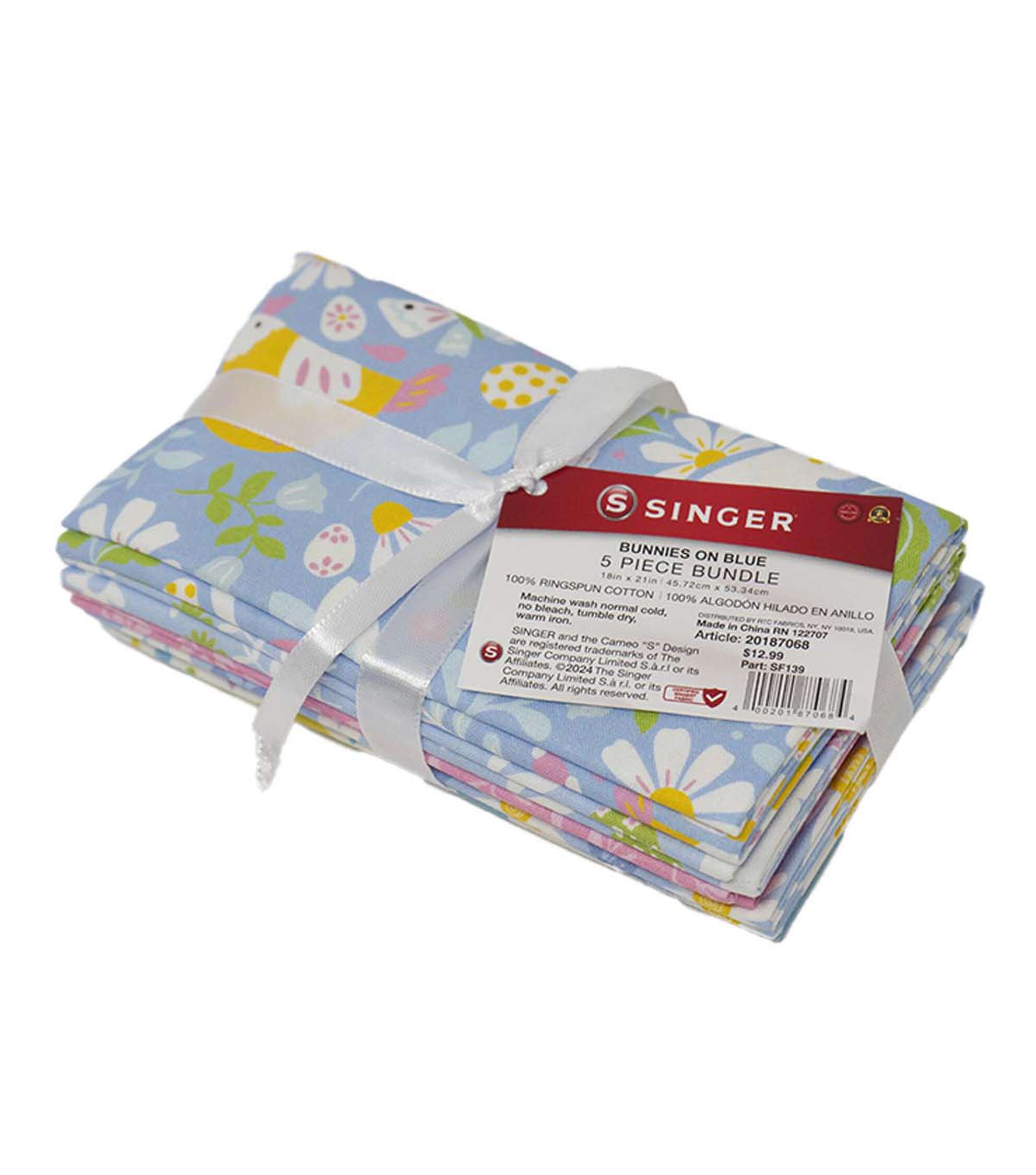 Get Ready for Easter with SINGER 18″ x 21″ Easter Bunnies on Blue Fabric Bundle 5pc