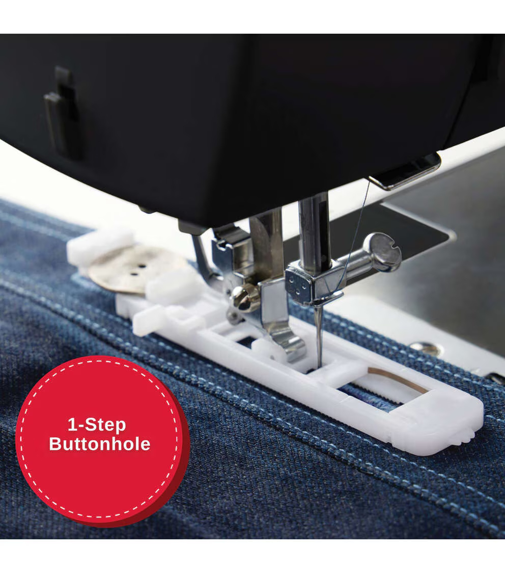 - One-Step Buttonhole- Buttonhole sewing is a one-step simple process. Just place your button in the foot’s holder, and the machine will stitch a buttonhole perfectly sized for your button, with consistent results every time.
