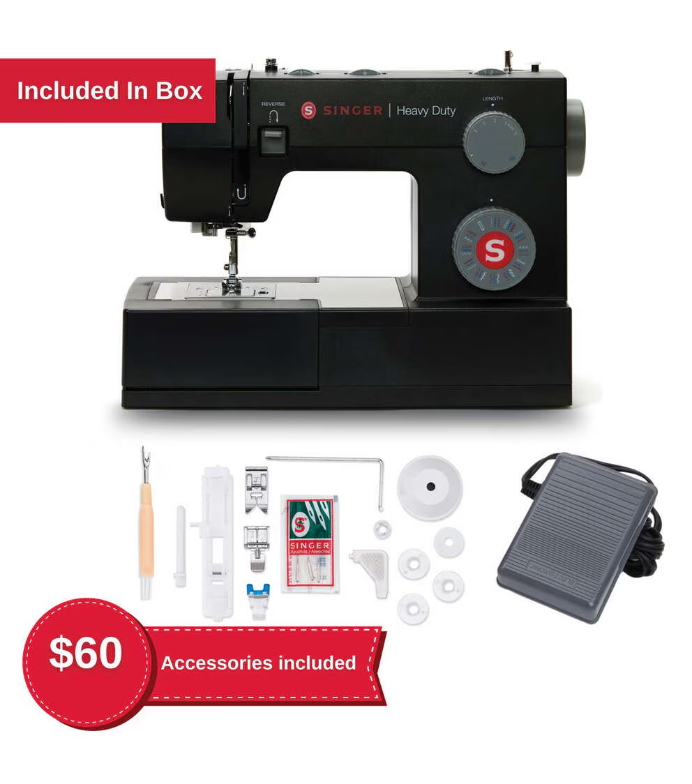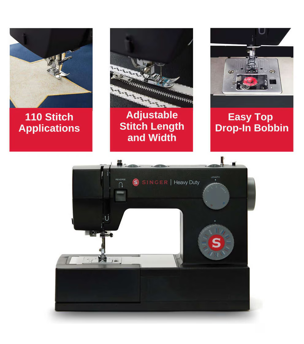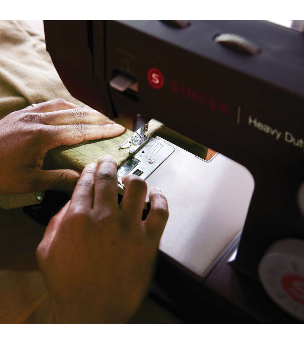 Sewing sheer or lightweight fabrics? No problem! The easily adjustable presser foot pressure also makes sewing very lightweight fabrics a breeze.In addition to strength, speed, and enhanced power, the Heavy Duty 4432 sewing machine brings creative capabilities! With over a hundred Stitch Applications, you will have the right stitch for any technique. Plus, enjoy many features for easy sewing like the top drop-in bobbin, stainless steel bed plate, built-in needle threader, and more! Whether you’re designing original garments, upcycling jeans, or transforming your home with custom home decor, ensure a great start on your sewing journey with the SINGER Heavy Duty 4432!