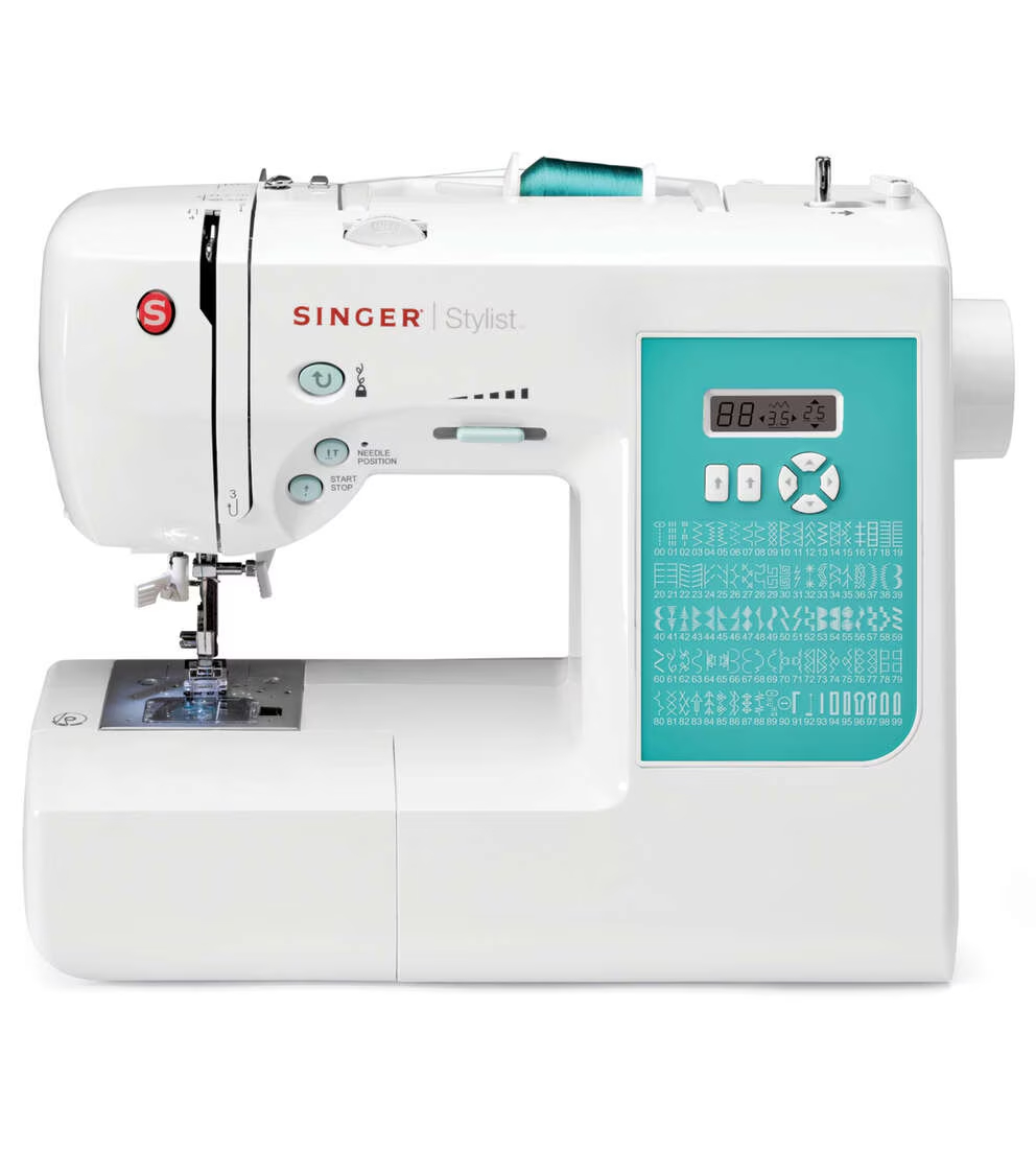 The Singer 7258 Stylist Electronic Sewing Machine is versatile addition to your sewing room. With 100 stitches from which to choose, you can create and embellish fashions, home decor and much more. Sew buttonholes in one easy step with consistent results every time. You can even choose from six different styles of buttonholes like the basic bartack style, round end and keyhole, great for menswear and outerwear. The Top Drop-in Bobbin is easy to thread and easy to see, so you won’t run out of thread in the middle of a seam. Programmable Needle Up/Down is a must-have for quilting, sewing appliques and even topstitching. When you select a stitch, the optimum stitch length and width are selected for you, saving time. Customize stitches to personalize projects using adjustable stitch length and stitch width, viewable on the LCD screen. You can even set the maximum sewing speed of the machine using the Speed Control lever, slower for more intricate projects or faster for long seams on curtains or duvets; you’re always in control. Take off the Removable Storage Compartment to access the Free Arm, which makes it even easier to sew around trouser hems and cuffs, children’s clothing and other smaller projects.