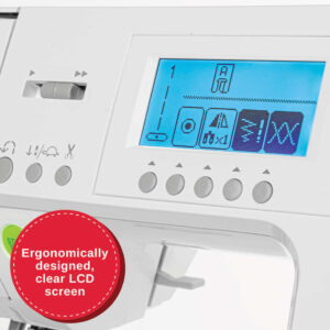 - ERGONOMIC LCD SCREEN-See before you sew at the perfect viewing angle. Easily view your stitch number, settings & more!