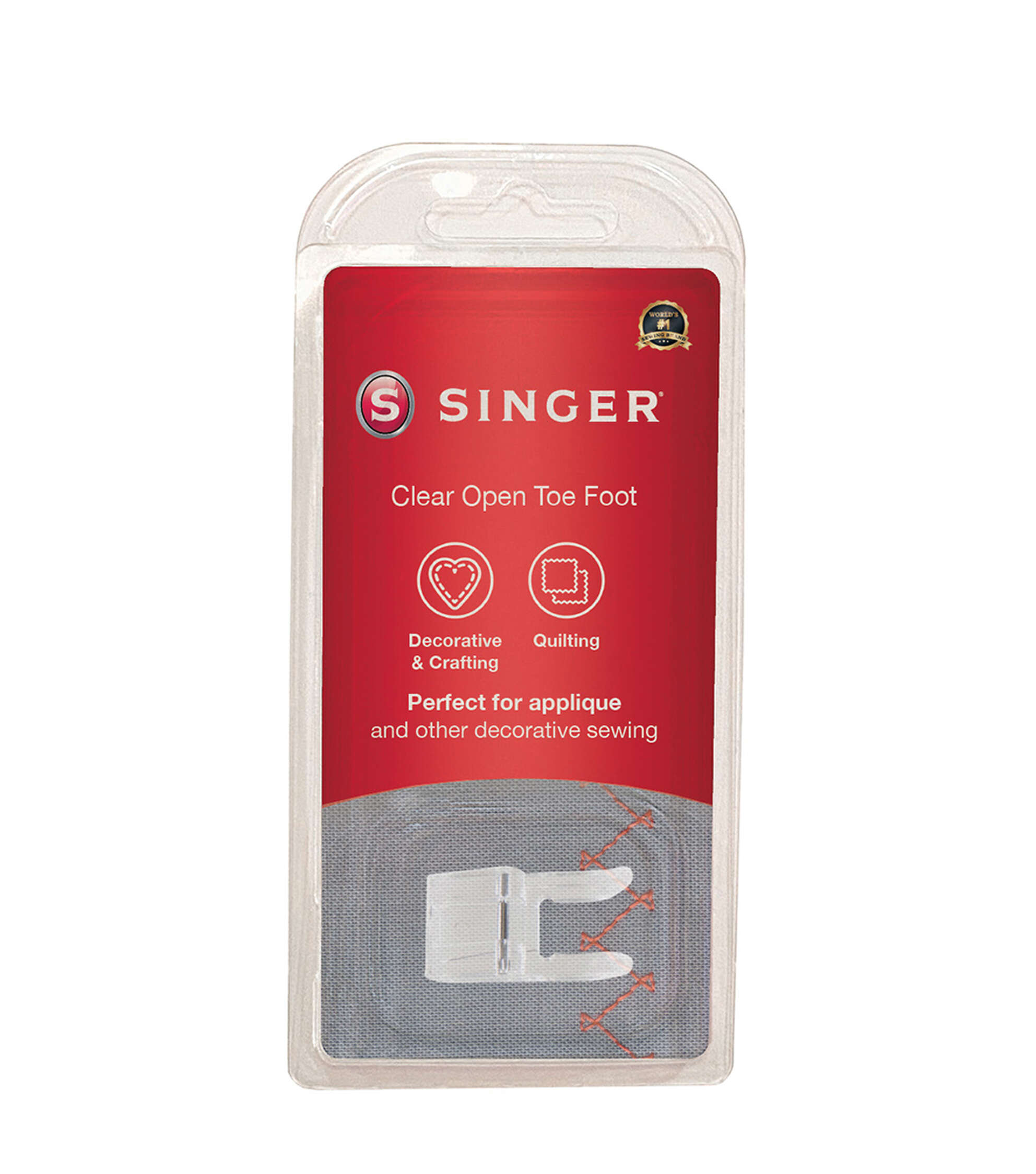 The Clear Open Toe Foot is perfect for appliqué, decorative stitching and surface embellishments such as applying trims. It provides an unobstructed view of the stitching while sewing since there is no bridge between the toes. There is also a groove on the underside of the foot to allow the stitching or embellishment to pass smoothly.