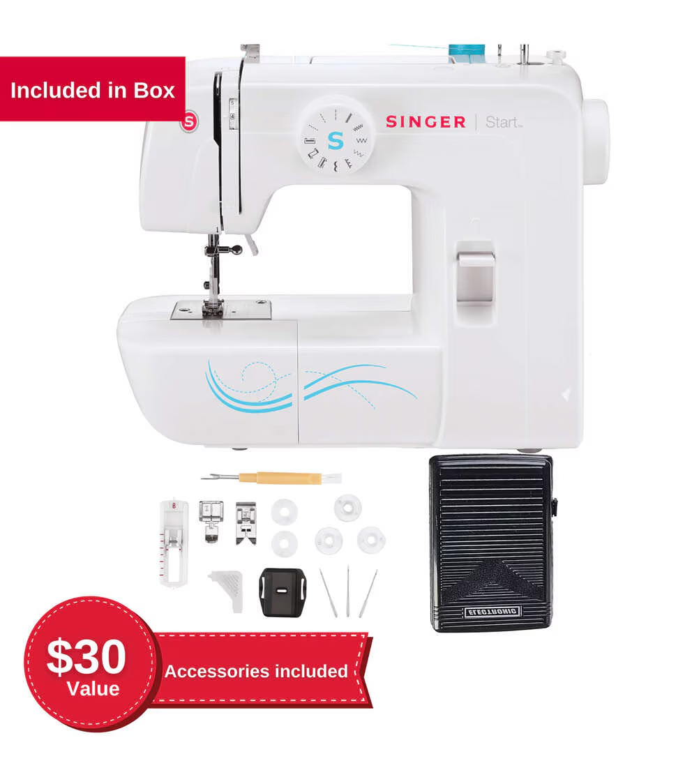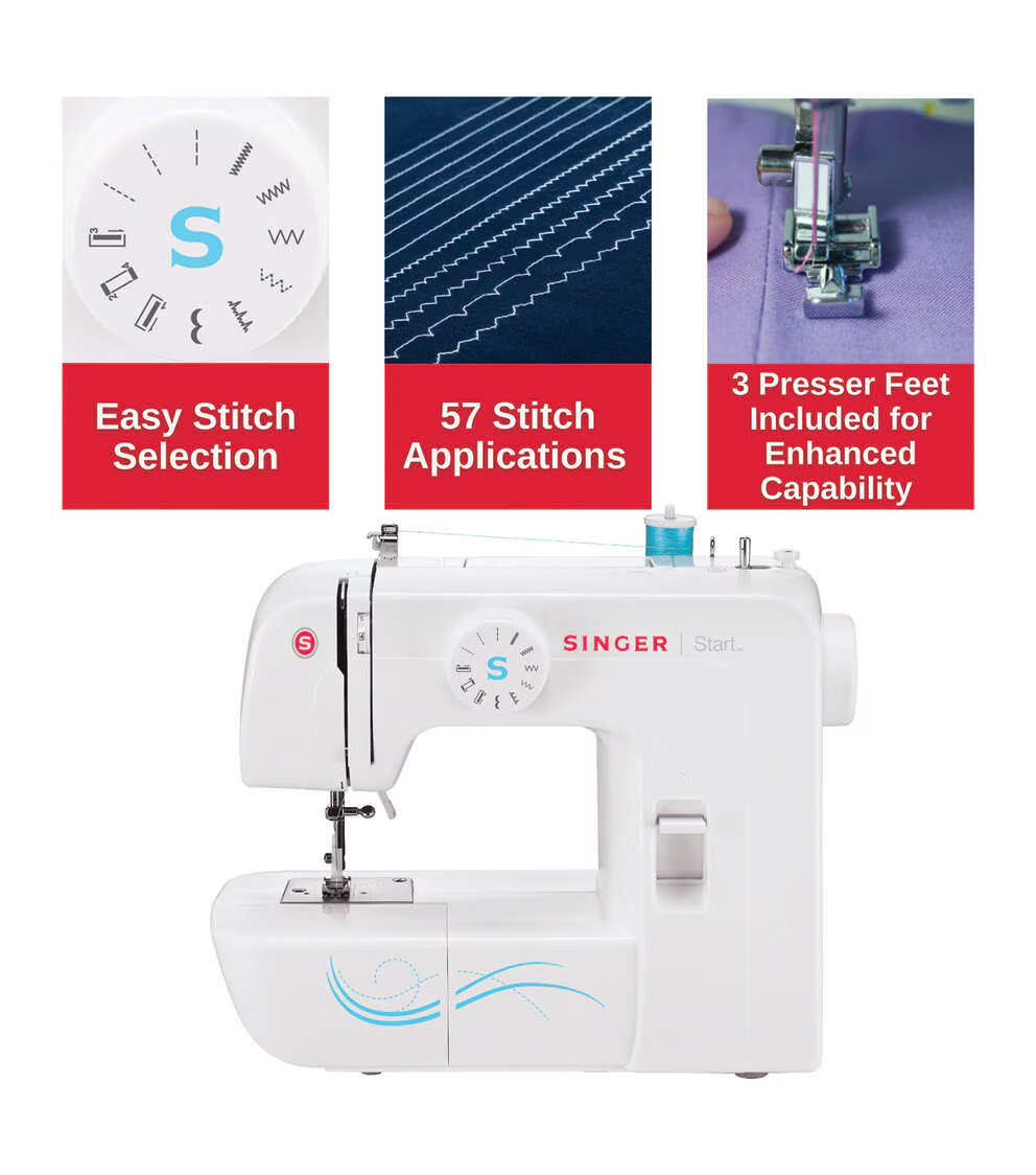 The SINGER Start 1304 is the perfect sewing machine for beginners, sewists-on-the go, and simple sewing or mending projects. With its lightweight and portable design, along with ease-of-use features, it’s no wonder why this creative sidekick is a customer favorite! The SINGER Start1304 has 57 stitch applications, providing essential sewing techniques to get your projects finished faster. Just turn the dial to select your stitch and start sewing! Plus, the stitch length and stitch width are preset taking out any stitch guesswork. Whether you’re sewing a simple applique, fixing a hem, or adding decorative scallops to a garment, you will love having the SINGER Start 1304 by your side!