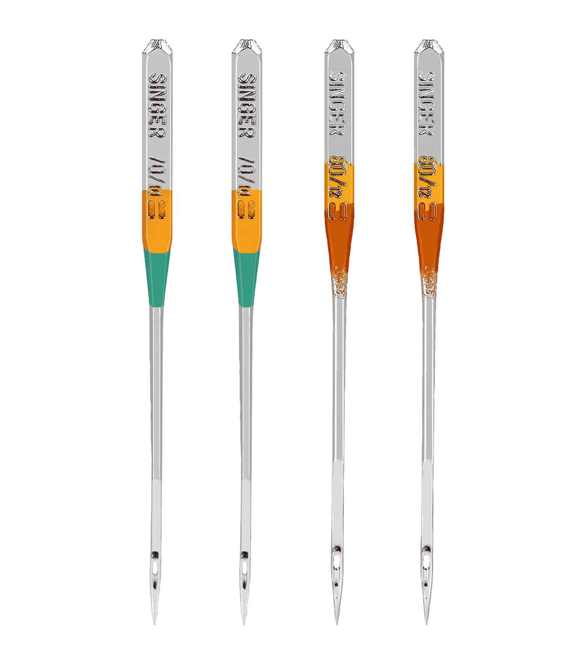 Perform multiple standard stitching projects on knit fabrics using the Singer Assorted Universal Ball Point Machine Needles. Ball point needles are best used on knit fabrics. This pack includes four machine needles that come color coded as per their size. The green-hued needles in size 70/09 and orange-colored needles in size 80/11 are designed for use on lightweight fabrics. All the needles come in an easy-to-store plastic container with sizes marked on the cover for easy location and replacement. These needles are compatible with Singer, Brother, Kenmore and other quality sewing machines.