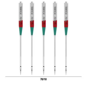 Perform multiple standard stitching projects on knit fabrics using the Singer Assorted Universal Ball Point Machine Needles. Ball point needles are best used on knit fabrics. This pack includes four machine needles that come color coded as per their size. The green-hued needles in size 70/09 and orange-colored needles in size 80/11 are designed for use on lightweight fabrics. All the needles come in an easy-to-store plastic container with sizes marked on the cover for easy location and replacement. These needles are compatible with Singer, Brother, Kenmore and other quality sewing machines.