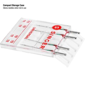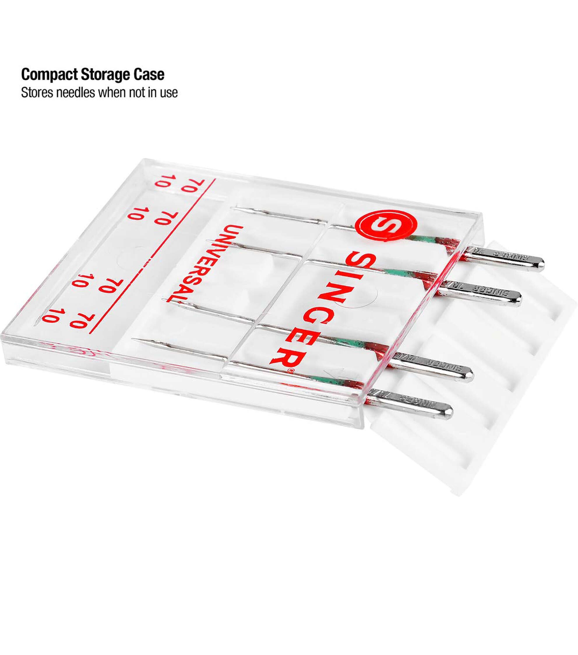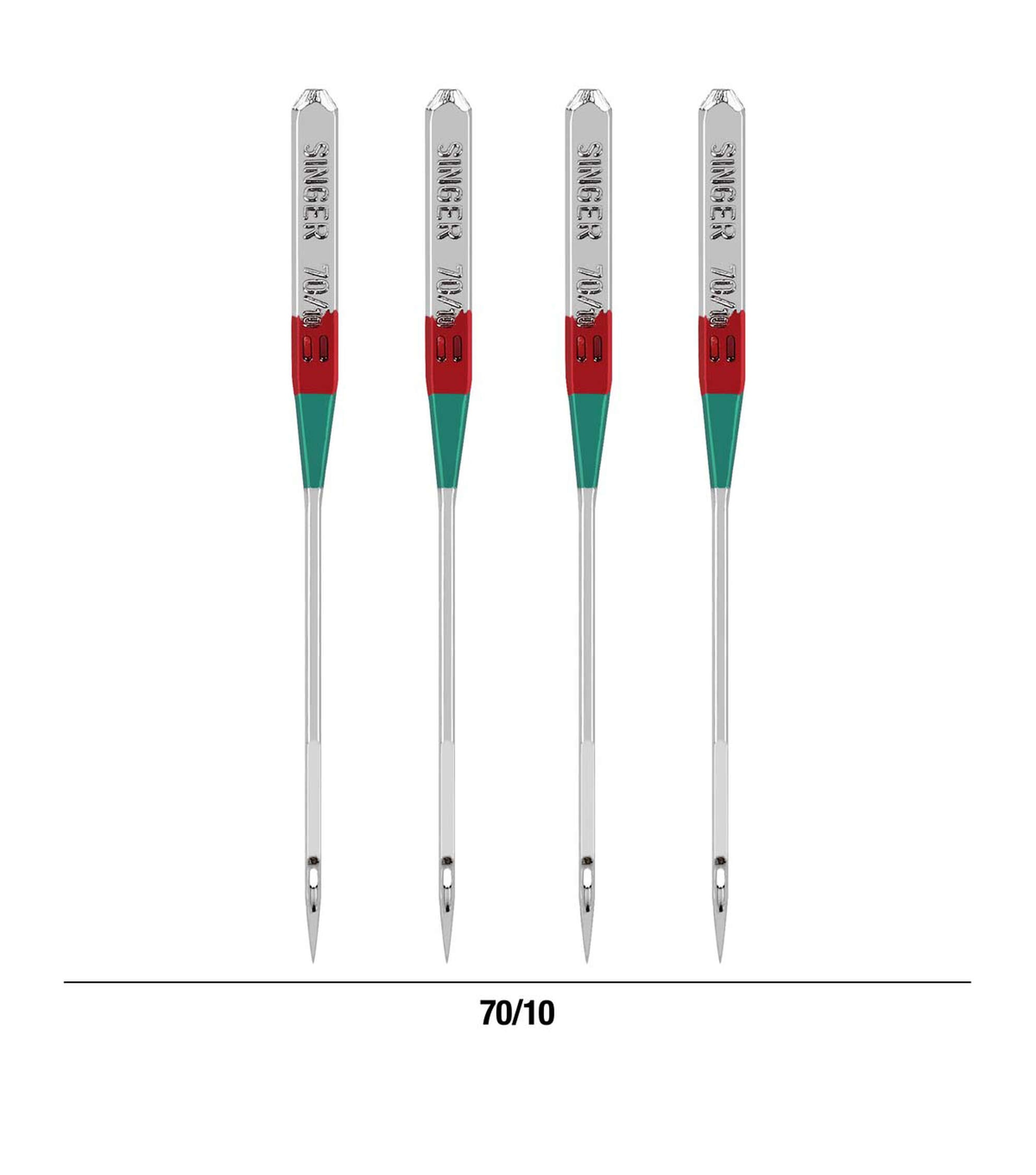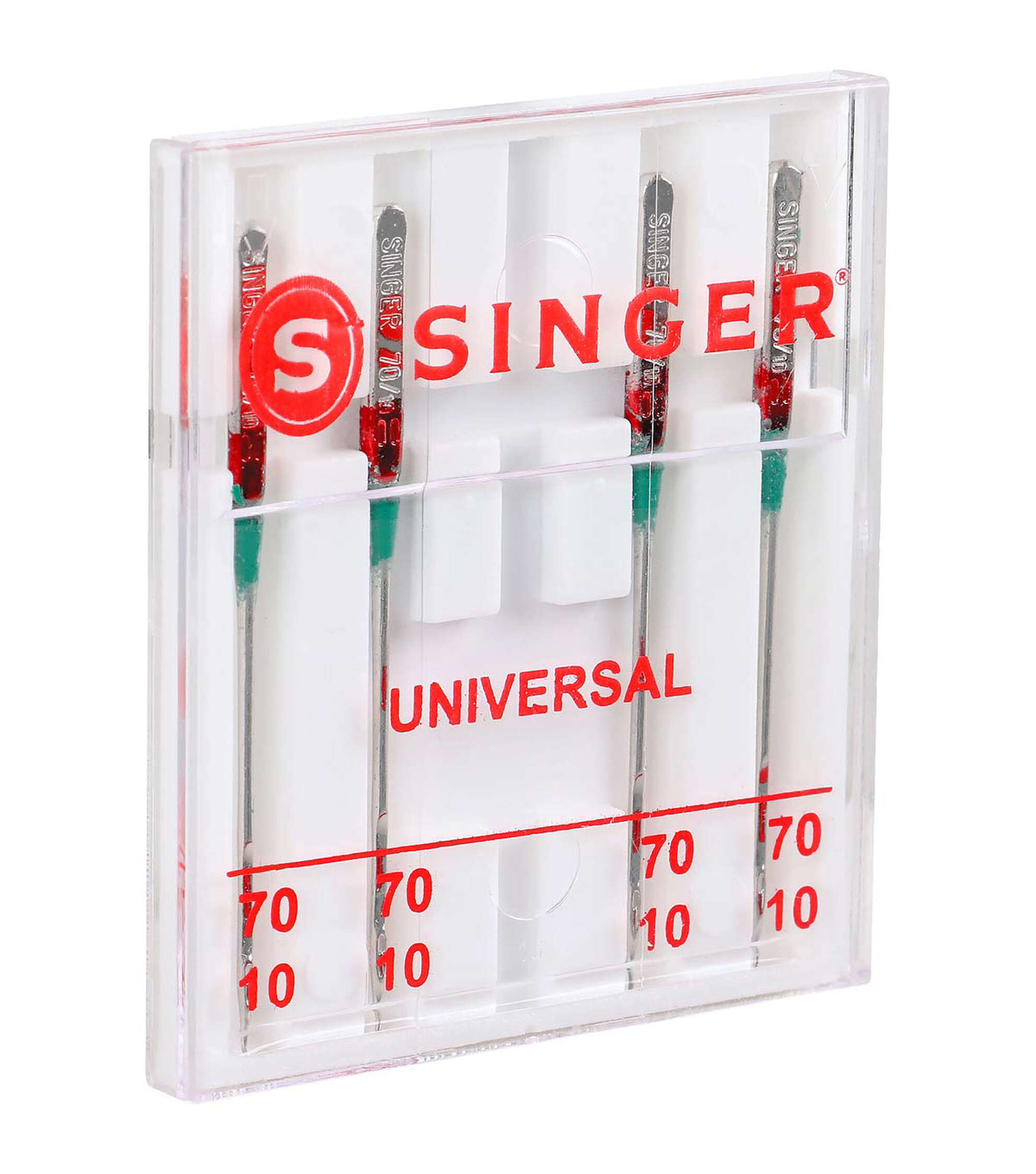 The Singer Universal Regular Point Machine Needles will be ideal for working on extremely sheer woven fabrics. This pack includes four needles in size 70/9. These regular-point machine needles are compatible with Singer, Brother, Kenmore and other standard sewing machines. They are color-coded for easy identification.
