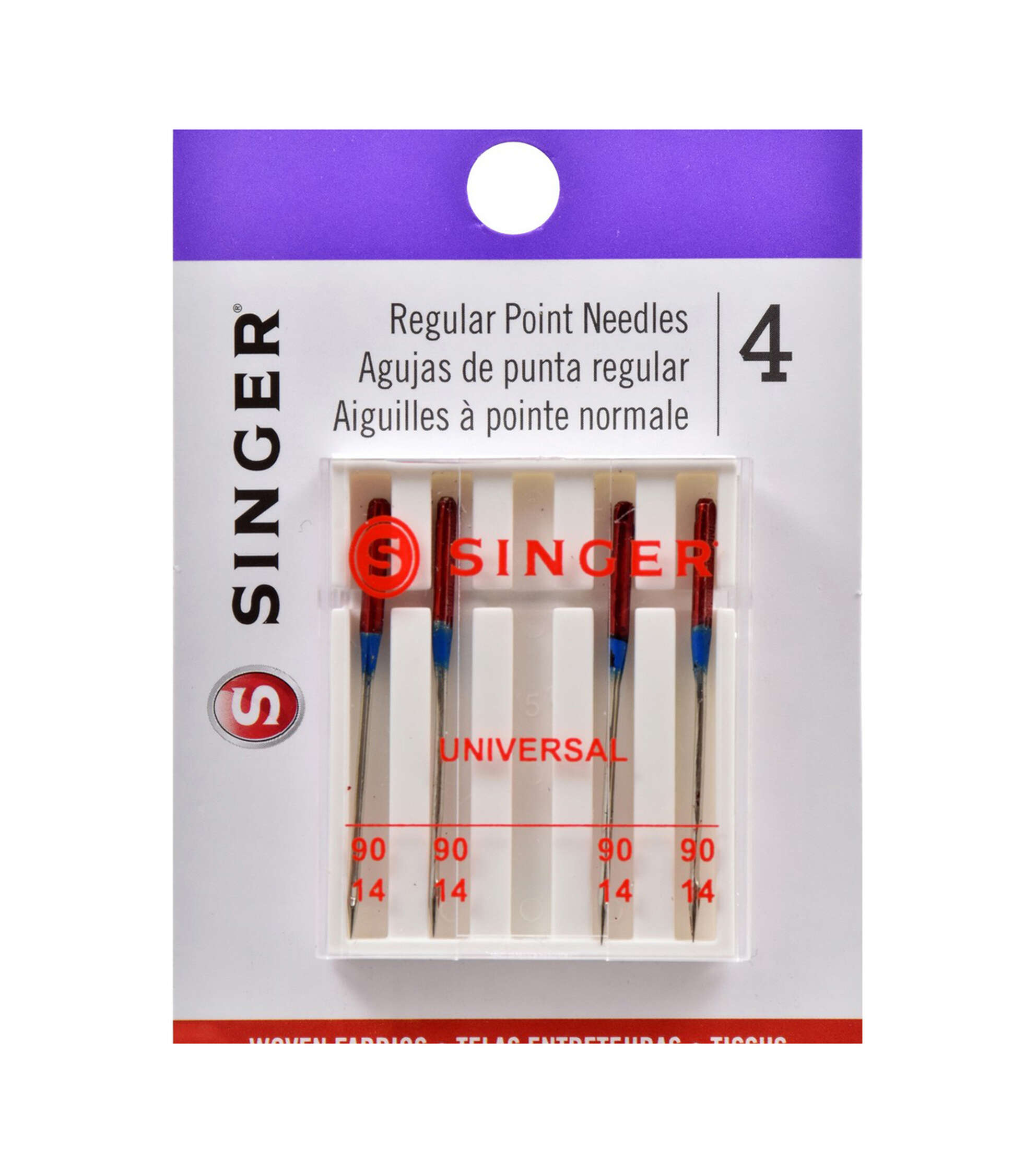 Use the SINGER Universal Regular Point Machine Needles for projects using medium weight woven fabrics. Compatible with SINGER, Brother, Kenmore and other quality sewing machines, these all-purpose needles are made of durable stainless steel and designed for basic stitching projects. Pack includes 4 size 90/14 needles. Needles are blue for size recognition and come in a labeled compact case.