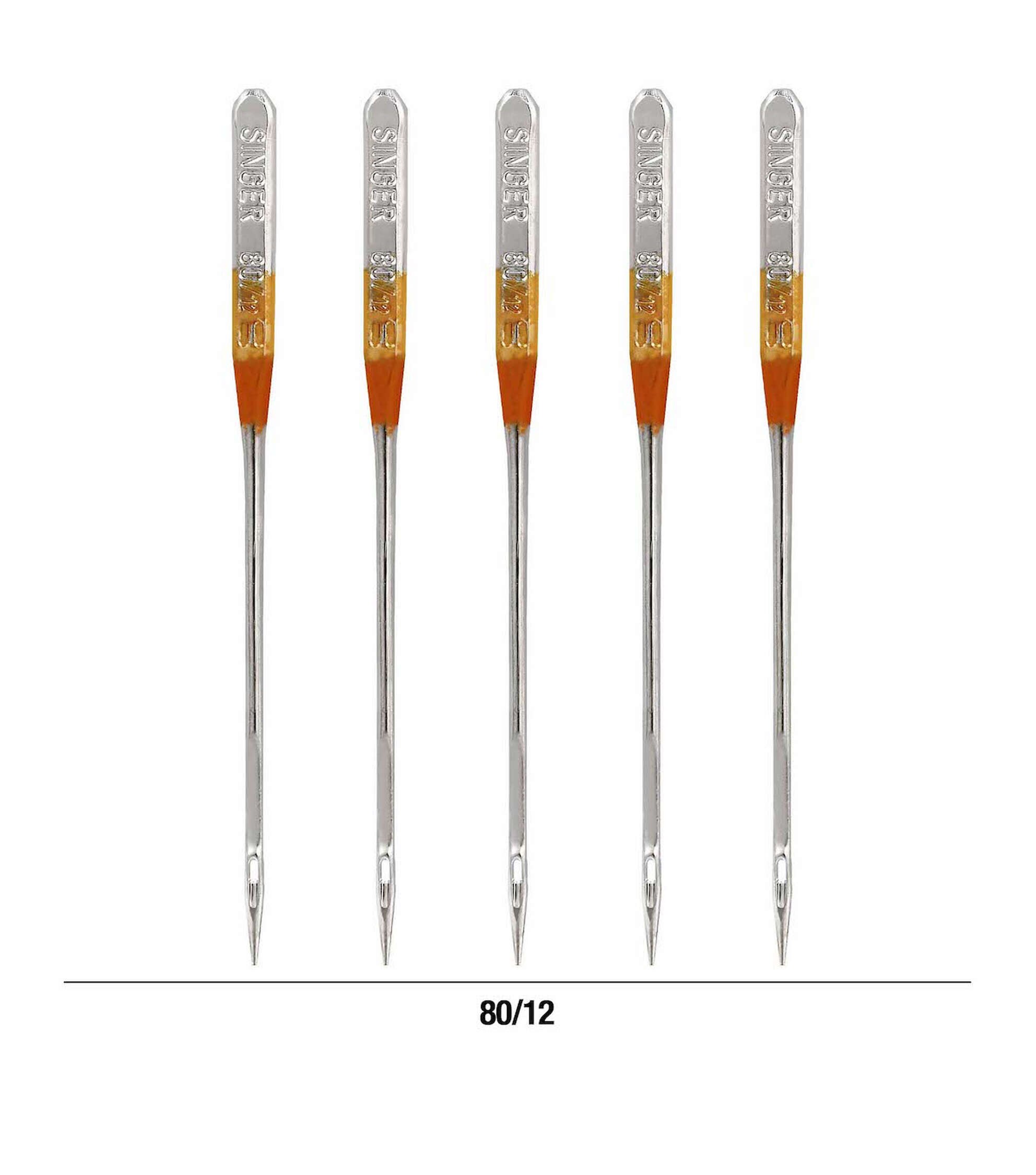 The Singer Universal Stretch Sewing Machine Needles are designed to prevent skipped stitches when working on spandex, lycra and suedes. This pack contains five size 80/11 needles that are best used on lightweight, stretch fabrics. They come in a compact case with sizing marked on the cover.