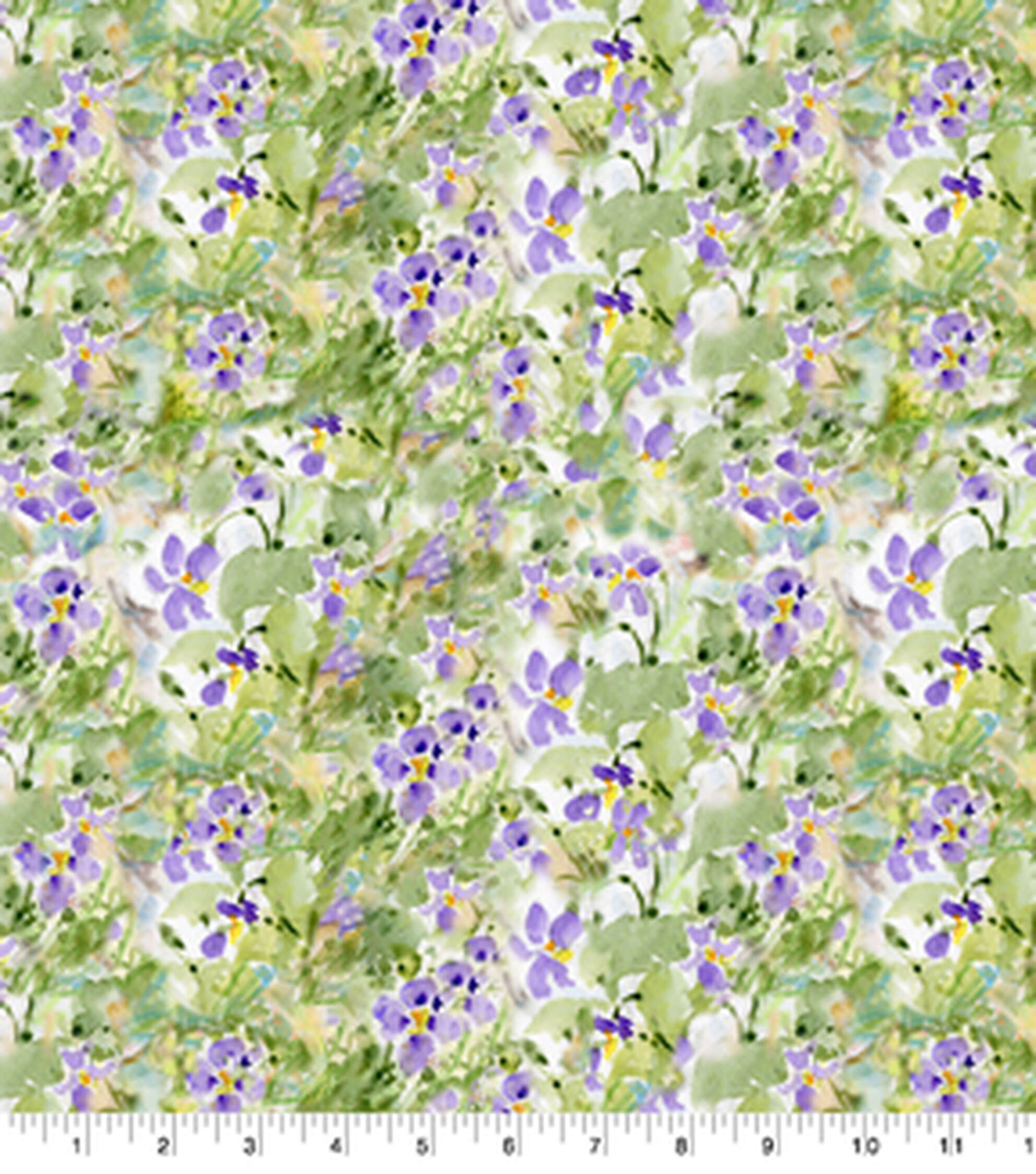 Susan Winget Purple & Green Floral Easter Cotton Fabric