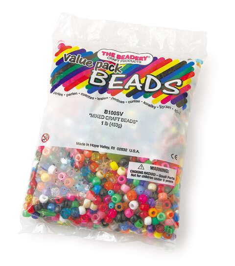 This fun bead value pack from The Beadery is colorful and easy to string. Great for kids to make jewelry or use in craft products. Available in a variety of shapes and sizes all in assorted color packs.
