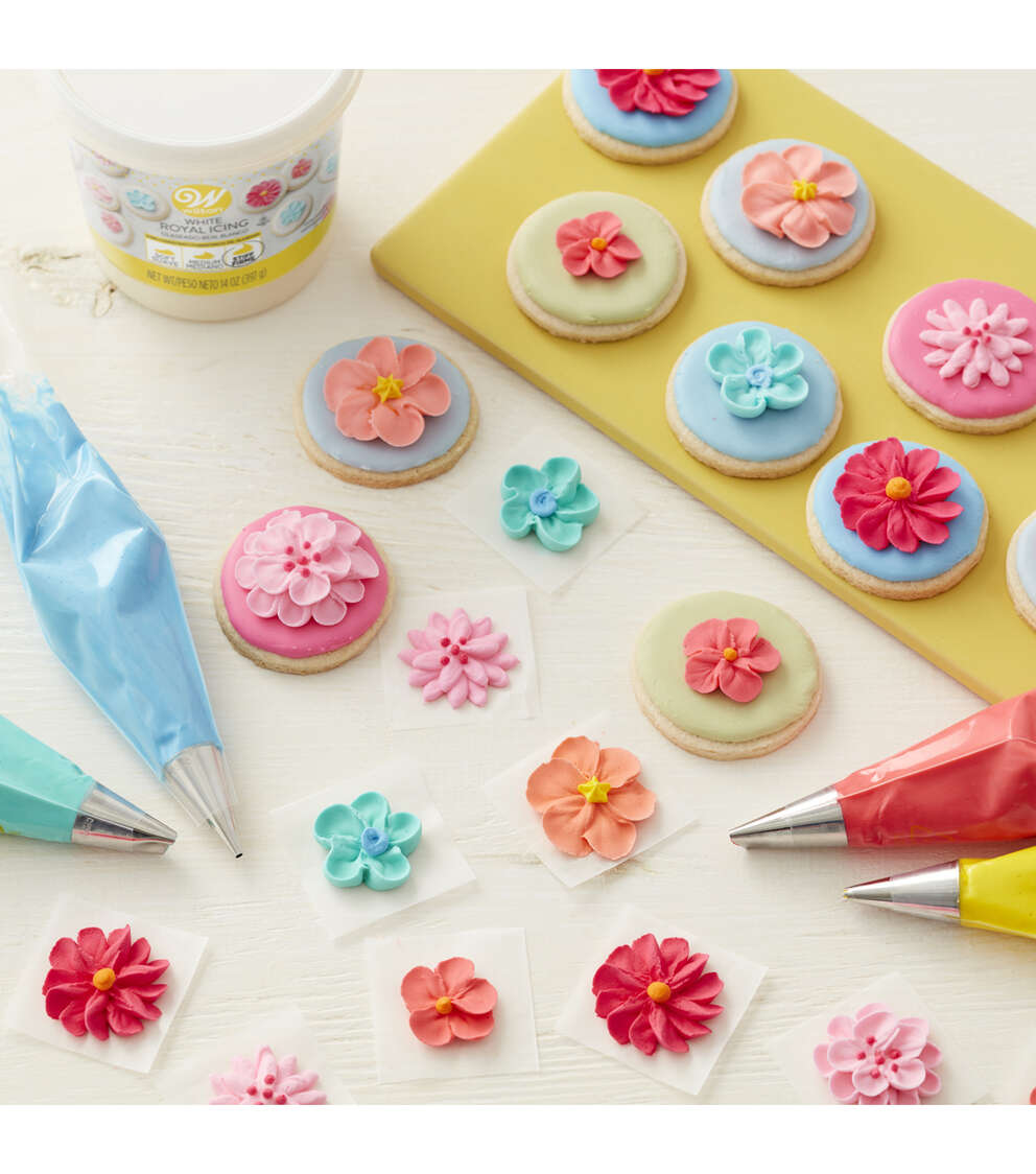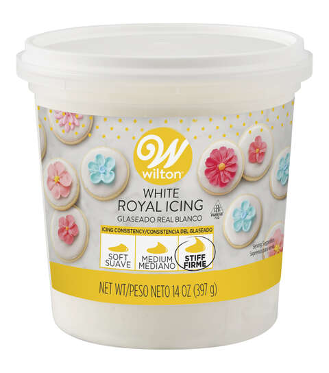 This pre-made royal icing makes frosting your cookies and creating decorations for cakes or cupcakes quicker and easier. Just add water to thin for flooding, or add confectioners’ sugar to thicken for making flowers and leaves. Use with Wilton icing color to tint to your perfect shade.
