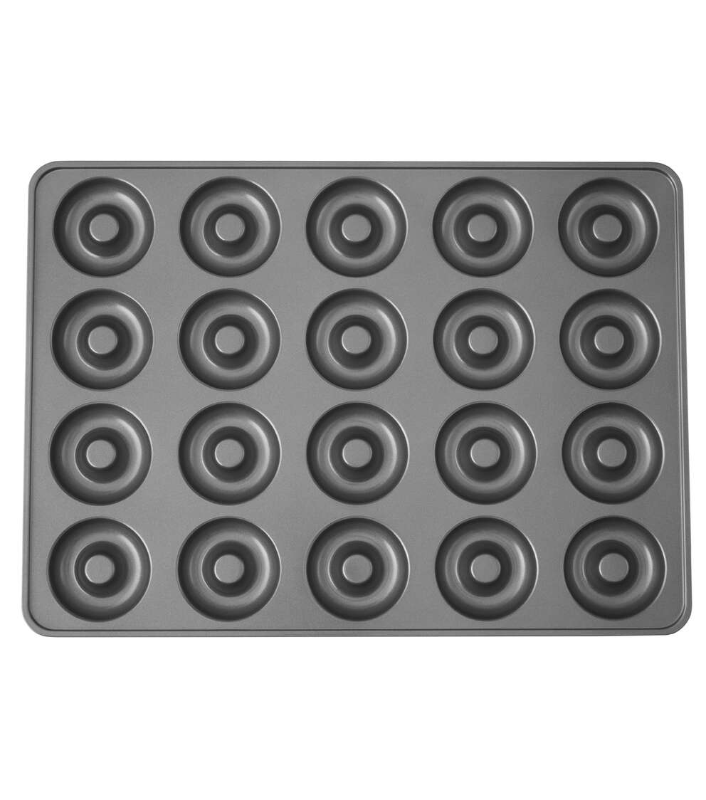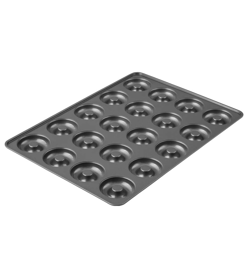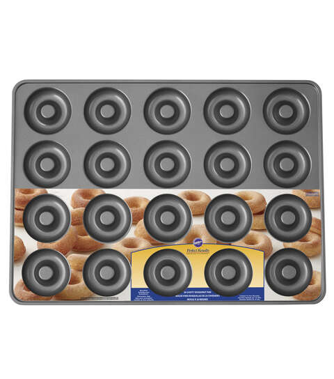 Choose the Wilton Perfect Results Non-Stick Doughnut Pan to bake your favorite food to perfection. Noticeably heavier than most comparable brands, this pan assures you of even heating, baking and browning. It’s dishwasher-safe, and designed with a non-stick surface for easy release of baked goods, as well as easy cleanup. This pack contains one premium doughnut pan with 20 cavities.